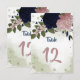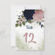 pink & navy flowers greenery table number