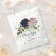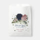 Romantic beautiful pink and navy blue flowers with green leaves botanical wedding favour bag.
