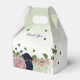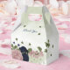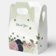 Romantic beautiful pink and navy blue flowers with green leaves botanical wedding favour box.