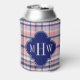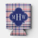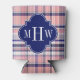 Pink Navy White Preppy Madras Quatrefoil Monogram Can Cooler