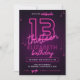 Pink Neon 13th Birthday Party Let's Glow Crazy Invitation
