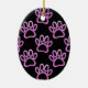 Pink Neon Dog Paw Print Ceramic Tree Decoration