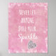 Pink Never let anyone dull your sparkle Quote Posters and Prints. Cool pink grunge background with the inspirational sparkle quote/affirmation and bokeh lights edges, with faux silver glitter heart. Inspirational, motivational message of character, confidence and courage.
