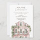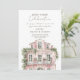 Celebrate your new home with this elegant pink watercolor house housewarming invitation. The design features a charming illustration of a beautiful pink house adorned with lush greenery and white roses, creating a romantic and welcoming atmosphere.