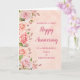Happy wedding anniversary card for niece and her husband with elegant pink watercolor roses and spring greenery, with a faux rose gold pattern.