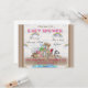 A pink baby shower invitation featuring Noah's Ark with all the animals, rainbows and clouds in the sky and customisable for your own party invitation.