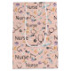 Charming seamless pattern gift bag featuring the word Nurse with medical essentials like stethoscopes, syringes, medicine bottles, and nurse cups on a soft pink background. This playful healthcare-inspired design blends feminine colors with nursing-themed elements, making it ideal for nurses, nursing students, healthcare workers, and medical professionals.