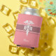 Enjoy your days off sipping your favourite drink from this Pink Nurse RN Script Personalised Can Cooler. It is a modern design with customisable pink background, a purple stripe and "RN" for registered nurse. A large white caduceus symbol is on the centre. Personalised with name in white trendy calligraphy script lettering on lower centre of both sides.