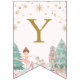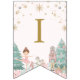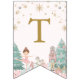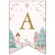 This pastel Nutcracker ballet birthday bunting flag sets the tone for your girl winter wonderland theme birthday celebration. The ODILE Collection has a soft pink background with Nutcracker ballet faves from the Sugar Plum Fairy, the Nutcracker in pastel pink, a rocking horse toy, Christmas tree, wrapped gifts, ballet point shoes, pink poinsettias, and soft mint green winter greenery. Serif font in gold spells out HAPPY BIRTHDAY.