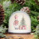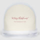 "Merry Christmas!" is the greeting on the back of this gift snow globe. You can change it. Be sure to edit the example family name and date.