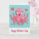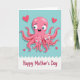 This card features a digital illustration of three stylized pink sea-creature characters cuddled close, with the larger one wrapping its tentacles around two smaller companions in a protective, affectionate pose ❤️. Their wide smiles and big blue eyes meet with a tender, friendly closeness that suggests family love without needing extra words. The trio sits against a cool aqua background, where deep pink heart shapes float nearby like little signs of affection. Soft shading and gentle gradients give the rounded shapes a bit of depth, and the tentacles curve smoothly with small orange‑pink suction details along the undersides. Near the bottom, a scalloped white border creates a neat space for the greeting, separating the characters from the message area. Centered on that white border, the words “Happy Mother’s Day” appear in burgundy lettering, easy to spot at a glance 🌼. The lower edge is finished with the white scallops and the burgundy text sitting neatly across the middle.