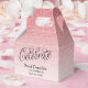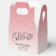 This beautiful favour box features faux pink ombre glitter and your custom text along with the word Celebrate in fancy script. Use the template form to add your information. The Customise feature can be used to change the font and the text layout. You can also add text to the other side of the favour box.