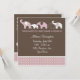 Playful pink elephants line up to welcome friends and family to a baby shower in hon or of the new Mum. There is plenty of room to add resitration and hostess information on the back too.