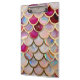 A mesmerising pattern of shimmering opalescent mermaid-inspired scales in shades of pink, magenta and peach, incased in a gold border. The combination of bold colours and the shimmering, holographic effect creates a captivating and enchanting design. Personalise with an initial.