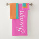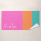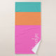 Pink Orange& Blue Colour Blocks Monogrammed Name Bath Towel Set