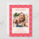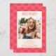 Bold Pink and Orange Chequerboard Pattern Sweet 16 Party Photo Invitation - AGE IS EDITABLE