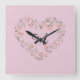 Pink Orange Floral and Greenery Heart Monogram Square Wall Clock