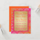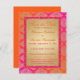 This vibrant east Indian Sari inspired wedding save the date card in shades of hot pink, fuchsia, and orange has a gold gilded LOOK damask pattern with a pink FAUX glitter (PRINTED ON, NOT real) border on it. The rich colours make it perfect for an ethnic wedding, Muslim wedding, or East Indian wedding. ****PLEASE NOTE that none of the elements on this invitation are raised or embossed. Everything is printed flat. This invitation would be perfect for a spring, summer, fall, or winter Indian, Hindu, Sanskrit, or Muslim wedding ceremony, engagement party, anniversary, or other wedding party. Also, if you re-size the invitation, or if you change fonts, or the size of the font, some of the design and/or text may get cut-off. Everything will print as you see it on your monitor. I will not see your invitation, and Zazzle will NOT correct anything (typos, alignment etc.). The text and paper are all customisable. If you need help with this invitation, please email me BEFORE you place your order. If you require any other matching items or would like any other design elements added to it, such as a symbol, etc., email your request to niteowlstudio@gmail.com and watch your spam folder for my reply.
