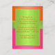 This tropical hot pink, bright orange, and lime green floral wedding enclosure card has a lime green PRINTED ribbon and bow with a pair of PRINTED diamonds and FAUX fuchsia pink glitter joined hearts on it that matches the wedding invitation shown below. You can use this as an accommodations card, a gift registry card, a wishing well card, a wedding website or information card, or a directions card by changing the customisable text to suit your needs. If you require any other matching products, please email niteowlstudio@gmail.com with your request.