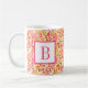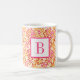 Pink Orange Retro Daisy Flowers Initial Monogram Coffee Mug