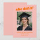 Pink Orange Retro She Did It Photo Graduation Announcement