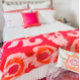 Refresh your room! Chic trendy colourful pink and orange tribal Ikat. Click Personalise It to add your monogram or name and create your own unique one of a kind design! Actual happy customer bedroom photo. By Marisu Valencia™.