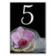 These pretty Pink Orchid and Pearls on Black Wedding Table Numbers make an elegant addition to the decor of your bridal shower or marriage reception. These classy custom flowery table number cards feature a floral photograph of a pink phalaenopsis orchid flower blossom, white bridal veil and pearl necklace with a black background.