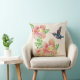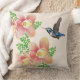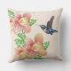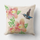 Beautiful pink orchid flowers and turquoise blue hummingbird on ivory Throw Pillow.