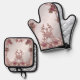 Beautiful Pink Ornate Floral Oven Mitt & Pot Holder Set