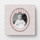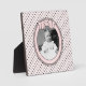 Adorable pink frame with a "lacy" border around it and a pretty pink bow on top, with a background pattern behind the frame design of black polka dots. Personalise this by changing the photo out with your own.
