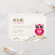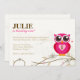 Pink Owl First Birthday Party Invitation. A really cute and whimsical pink coloured owl with a heart on its front sitting atop flourish branches and leaves. Owl holds the number one to show the age of the birthday girl (number can be changed for whatever year you choose) A neutral cream background really makes not only the owl illustration pop but your text as well. Whimsical and cute, it makes the perfect girl first birthday party invitation!
