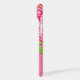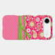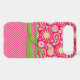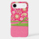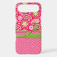 Protect your iPhone 6 Plus in this pretty bright pink and green case. A colourful paisley pattern covers the top half of the case, with a pink and white lattice pattern, on the bottom half. Graphics of a green ribbon, runs across the middle of the case. Customise this pretty case with your own text.