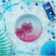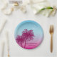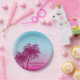 Pink Palm Trees On Blue Tropical Summer Paper Plate