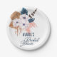 A beautiful bridal shower paper plate with a pretty white pampas grass flower and a feather