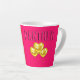 My design features a vibrant pink background with text in a mix of pink and black, complemented by white edges. Three golden hearts at the bottom are connected by thin golden strings, adding a touch of elegance to the overall composition.