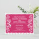 A single papel picado flag stands out in bright pink against a white background to invite guests to your next fiesta. Graphic flowers create side borders. The reverse repeats the border of the single banner. Use for a Mexican engagement party, Cinco de Mayo celebration, birthday party, or a bridal shower celebration. Available with matching products.