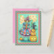 PINK PARTY WITCH IS HALLOWEEN MAGIC, BLACK CAT HOLIDAY POSTCARD