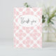 Pretty pink pastel damask pattern on white background “Thank you” in typography. Perfect for any occasion.