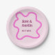 Pink pastel retro wedding border frame name date paper plate