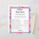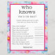 Step into the fun and festivity with our Who Knows the Bride Best game, designed exclusively for bridal showers! Infused with a whimsical floral pattern, this game not only promises loads of laughter and bonding but also blends seamlessly with your bridal shower décor, setting the stage for an unforgettable event.