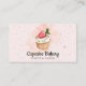 Pink Pastry Watercolor Strawberry Cupcake Business Card