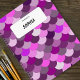 Make a personal named Notebook with this fish shell pattern in pinks and purple on front and back.