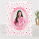 Make her big day unforgettable with this charming custom photo birthday card, perfect for celebrating a special girl turning another year older! Featuring an abstract pattern of watercolor-style pink designs on a white background, this card adds a pop of playful girly delight to the celebration. The soft pink oval frame highlights your child's photo, with her name and birthday greeting beautifully displayed in a whimsical font.
