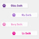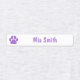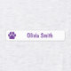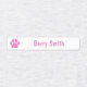 Personalized Kids Name Iron On Labels Pink & Purple - Prevent Mix-ups - These personalized iron-on clothing labels feature a cute paw print design in various shades of pink and purple. Perfect for organizing back-to-school gear, daycare essentials, or summer camp wardrobes.