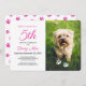Pink Paw Prints Pet Birthday Photo Invitation