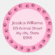 Pink, custom address labels with a circle of plum coloured dog or cat pawprints on a pink border around the edge of the sticker. In the centre is a lighter pink area you can customise with your name and contact information. Use the stickers as return address labels on the back of envelopes or on gift packages. Or as bookplates or property labels and stick them in books or on other belongings to identify them as yours. Available in other colours. Cute, girly design for girls and women. Save money by buying in bulk.