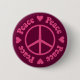 Peace - hippie button pin with pink lettering, hearts and peace sign.