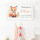 Welcome guests in the sweetest way with this pink peach woodland fox baby shower banner. Featuring a soft watercolor fox with gentle florals, this charming backdrop adds a warm and inviting touch to your celebration. Perfect for entry tables, photo areas, or behind the gift table.
