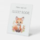 Pink Peach Woodland Fox Baby Shower Guest Book Pedestal Sign