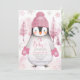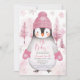 Pink Winter Penguin knitted Hat Snowflakes Baby Shower invitation